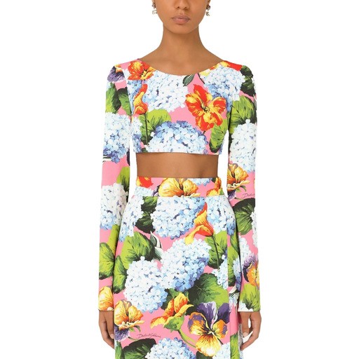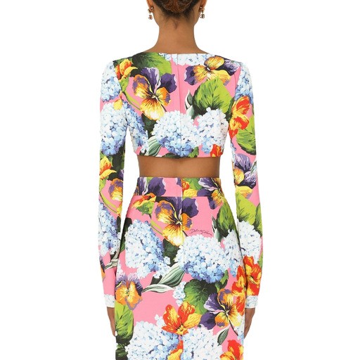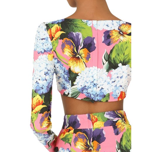 Dolce & Gabbana long-sleeved cropped top in stretch viscose with floral print, zip closure on the back